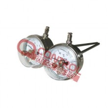 WSSX系列電接點雙金屬溫度計帶有電接觸裝置一即機械電接點。當(dāng)被測介質(zhì)溫度變化時,自由端上的細軸及轉(zhuǎn)向傳動機構(gòu)帶動指針及動觸點轉(zhuǎn)動,在標(biāo)度盤上指示出溫度的變化值,當(dāng)其與定觸點(上、下限定觸點)接觸或斷開時的瞬時,使電路系統(tǒng)中的繼電器及接觸器動作,以達到自動控制和報警目的,應(yīng)符合JB/T8803 1998標(biāo)。