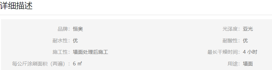 系列墻面經(jīng)過一定處理后施工,遮蓋力強(qiáng)、附著力強(qiáng)、抗堿、防污、防霉。一般涂兩次重涂時間2-4小時,溫度低于5度請勿使用,有效時間12小時