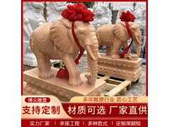 晚霞紅石雕大象一對戶外園林庭院酒店景觀動物石雕漢白玉大象雕塑
