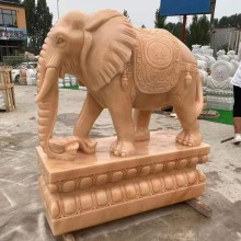晚霞紅石雕大象一對戶